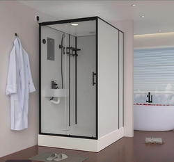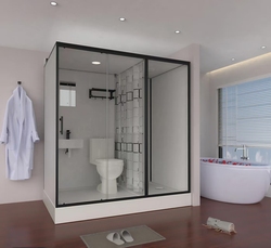 Einfach die schwarz gerahmte Duschkabine einbauen